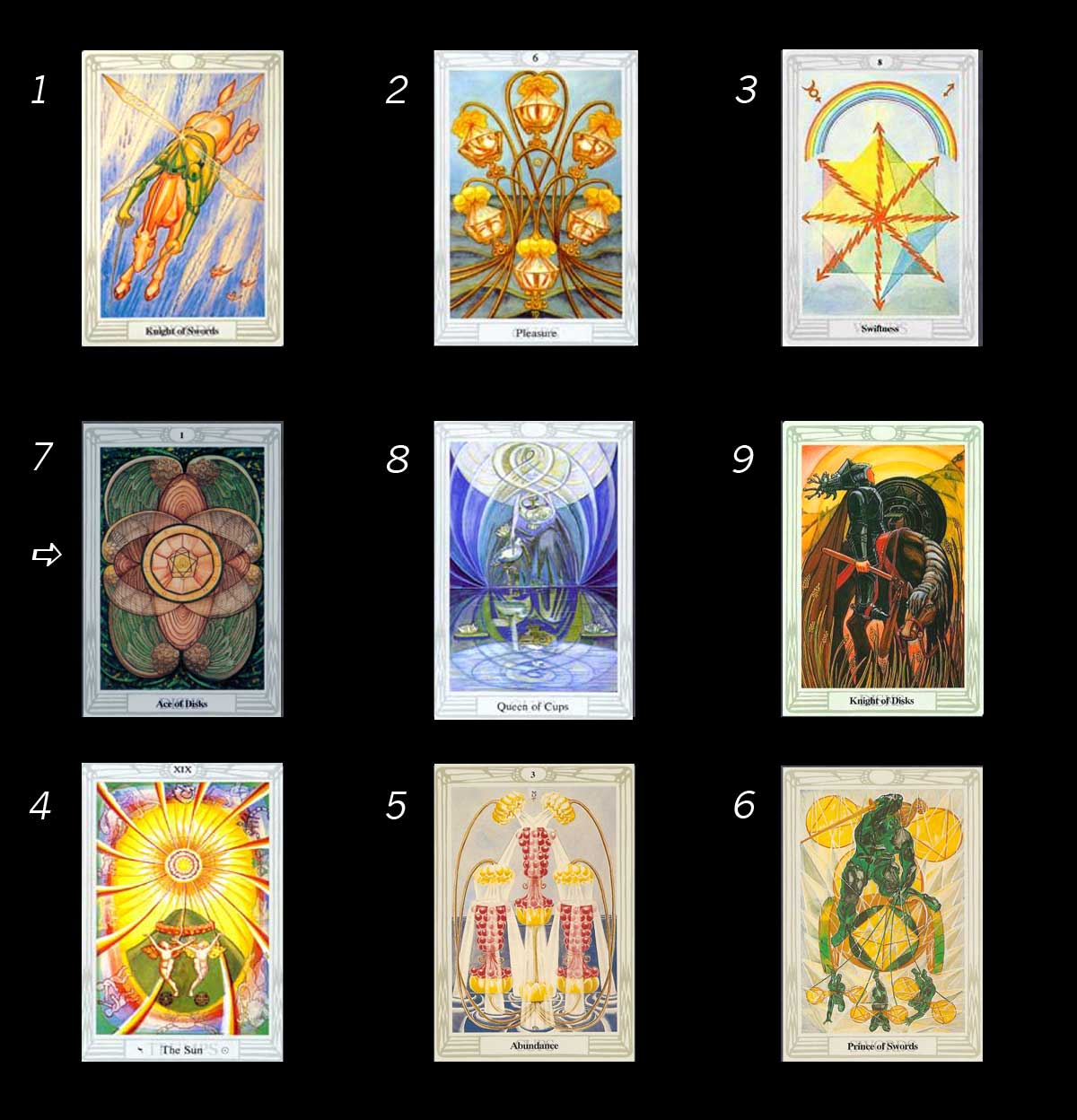 I pulled the Seven of Pentacles, the Six of Wands, and the Knight of Swords.